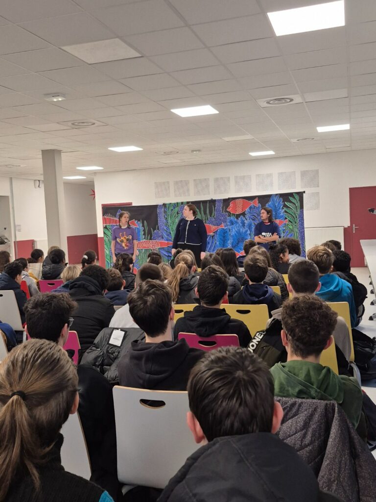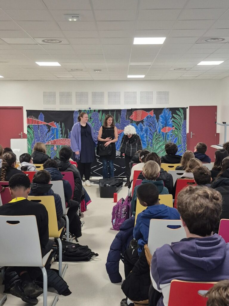 Mercredi 10 décembre 2025, trois comédiens germanophones de la Compagnie « Ma langue au chat » (troupe de théâtre linguistique) ont proposé un spectacle en allemand, d’une heure aux élèves germanistes (de la 6e à la 3e).