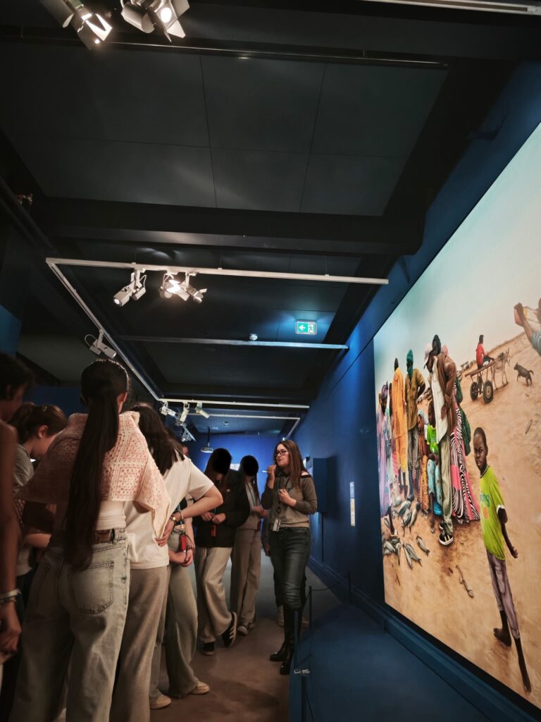 Après avoir déjeuné dans le bois de Vincennes, nous avons pu visiter l’exposition « migrations et climat » : une exposition très intéressante qui met en lumière le réchauffement climatique et son impact sur les déplacements de personnes.